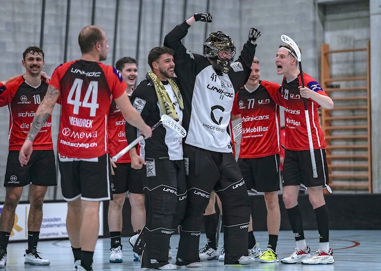 Rot startet gut ins Programm. Man schlängelt sich geschmeidig durch die schwarzen Trikots, und setzt sich mit einem Doppelschlag zum zweiten Mal in dieser Vorstellung in den Vordergrund der Trommel, also 43. Minuten sind gelaufen! Schwarz wurde gerade kalt gespült, und man konnte gespannt auf den Rest des Programms sein. Noch war nicht Schleudern angesagt. Schwarz musste sich etwas einfallen lassen. Das Restprogramm wurde eindeutig von Schwarz angedreht, mit einer Drehzahl, die es in sich hatte. Aber das bringt auch Gegendruck, und so passierte es auch. Mit einem tollen Gegenstoss konnte Rot durch die Mitte den nächsten Tolken ausmachen. Nur noch 4 Minuten bis zum normalen Programmende. Schwarz brachte einen sechsten ins Spiel. War da schon der Weichspüler im Fach? Nein, nein, das darf nicht sein. Einer hatte klar etwas dagegen. Weichspüler bei Synthetik ein NO-GO. Diskret, aber wirksam im Hintergrund der Trommel, fast durchs ganze Programm vor dem Netz agierend, spannte sich nun plötzlich Weiss ins ganze Schaufenster der Trommel. In voller Grösse, ich glaube, das muss XXL gewesen sein! Dies war sein Veto gegen den Weichspüler, der da eingeschleust werden sollte. Kurz darauf setzte die Trommel zum Auslaufen an. Die Wäsche konnte geschleudert (gehüpft) werden, und man strahlte über die Sauberkeit des Waschergebnisses. Endstand 5:7 für Rot.