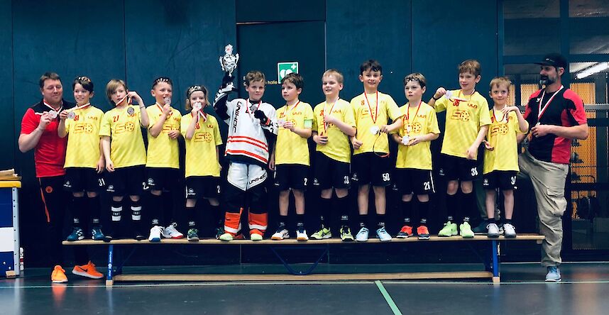 Wir gerieten nach einem seitlich abgelenkten, zufälligen Abpraller genau vor unser Tor, in Rückstand. Die ganze Partie hindurch schnürten wir die Obwaldner oft in ihrer Hälfte ein und hatten jede Menge Torschüsse auf ihren Kasten. Die wenigen Gegenstösse ihrerseits wurden von unserer Abwehr oder dem herausragenden Torwart unserseits zu Nichte gemacht. Trotzdem blieben wir hartnäckig und erzielten 20 Sekunden vor Schluss den vielumjubelten Ausgleich zum 1-1. Somit ging es ins entscheidende Penaltyschiessen. Was für eine Dramatik, nach jeweils 3 Penaltys stands 2-2! Nun gings weiter mit jeweils einem Schützen, und unser traf leider nicht ins SCHWARZE. Obwalden durfte jubeln und bei unseren Kids schossen die Tränen in die Augen. Der Aufwand war riesig, und am Schluss hatte es doch nicht ganz gereicht für den 1. Platz. Die Enttäuschung war da, verschwand aber nach Silbermedaille und Pokal schnell wieder.