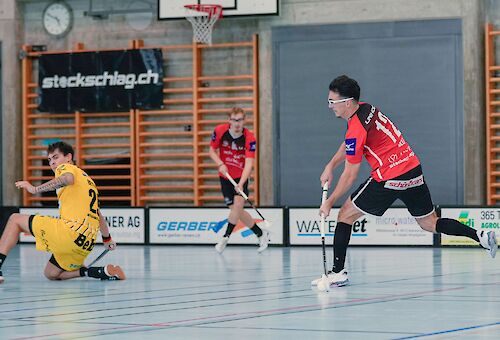 In der vierten Minute im Mitteldrittel offerierte ULA dem Gegner mit einem weiteren Fehlpass den Ausgleich, Miika Kimpanpää brachte die Oberaargauer nur Sekunden nach dem Anpfiff aber wieder in Front. Das Spiel wurde intensiver. In der 29. Minute eroberte Louis Cornillie den Ball in der Mitte und erzielte mit einem präzisen Weitschuss das 4 – 6. Ein Konter in der 35. Minute der Sarner konnte ULA-Schlussmann Spycher erst noch abwehren, doch gegen den Nachschuss war er dann machtlos. Mit dem 2 – 2 Drittelsresultat und einem Gesamtskore von 5 – 6 ging’s in die zweite Pause.