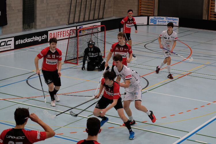 ULA war bisher sehr souverän aufgetreten, die Frage war nun, ob die nur 13-Mann-starke Mannschaft die Pace auch in den letzten 20 Minuten durchhalten konnte. Ein Bremser musste in der 43. Minute registriert werden, als Mael Moor wegen Stockschlags auf die Strafbank musste; Floorball Fribourg spielte an und jubelte bereits über das 4 – 2. Die Gäste hatten nun Aufwind, machten Druck auf das ULA-Tor und wurden bereits zwei Minuten mit dem 4 – 3 belohnt. ULA nahm sein Time-out, die Trainer schwörten ihre Jungs nochmals ein, und los ging’s wieder! Das Spiel nahm nun richtig Fahrt auf und bot den Zuschauern attraktives Unihockey. Ein Ballverlust in der eigenen Zone bescherte Fribourg die Möglichkeit zum Ausgleich, diese nutzen sie, und so war in der 51. Minute alles wieder ausgeglichen. Die Gäste machten nun mehr Druck und konnten in der 53. Minute mit einem Doppelschlag auf 4 – 6 stellen. Nicht einfacher wurde das Ganze als Christoph Schmid immer noch in der 53. Minute wegen Stossens auf die Strafbank musste. Die Strafe überstand man unbeschadet, setzte alles daran, den Rückstand noch wettzumachen, scheiterte aber Mal um Mal an den hoch stehenden Freiburgern und musste schlussendlich die drei Punkte ins Welschland ziehen lassen. Der aufopferungsvolle Kampf von ULA wurde schlecht belohnt, dementsprechend mit hängenden Köpfen verliessen die Spieler das Feld.