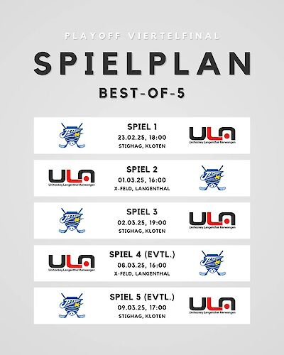Kommendes Wochenende starten die Playoffs der NLB; unser Team reist am Sonntag nach Kloten und spielt gegen die Jets.