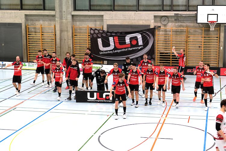 Auch das Schlussdrittel konnte ULA mehrheitlich dominieren, doch die zwingenden Abschlüsse fehlten noch. Es war beinahe die Hälfte des Schlussdrittels gespielt, als die St. Galler einen ULA-Ball in der Spielfeldmitte abfingen, zu zweit gegen einen Verteidiger losstürmen und den Ausgleich erzielen konnten. Weiteres Ungemach drohte, als Jan Bucher in der 50. Minute wegen überhartem Körpereinsatz für zwei Minuten pausieren musste. Doch ULA stand gut und konnte das Powerplay des Gegners neutralisieren. Einmal mehr lohnte sich der unermüdliche Einsatz der ULA-Jungs, die Halle tobte, als Patrick Lüscher auf Pass von Lukas Moser den erneuten Führungstreffer schiessen konnte. Nur 90 Sekunden später entwischte Steven Dätwyler und netzte kaltblütig zum 6 - 4 ein. Erstmals führte ein Team mit zwei Toren Vorsprung, und diesen wollten die Langenthaler unbedingt über die Zeit bringen. Bereits vier Minuten vor Drittelsende nahm Sarganserland den Torhüter zu Gunsten eines sechsten Feldspielers raus. Dies zahlte sich in der 59. Minute durch den 6-5-Anschlusstreffer aus. Doch ULA vermochte erneut gut dagegenzuhalten, brachte den Vorsprung über die Runde und konnte so den ersten Sieg in dieser Serie verbuchen. Die Freude und Begeisterung im Kreuzfeld waren riesig - der Start ist geglückt!