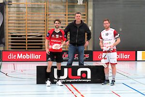 Fabian Beeler (Unih. Sarganserland) und Steven Dätwyler (ULA) wurden für ihren Einsatz von Peter Schick (Schick Immobilien) als Best-Player geehrt.