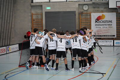 10 Minuten waren gespielt, da gelang Adrian Hofer nach einem schönen Ballgewinn dank starkem eigenen Forechecking das 4:7. Acht Minuten vor Schluss gab es eine zwei Minuten Strafe gegen uns, doch unser Box-Play war richtig «heiss», und man blockte Schuss um Schuss, ein von Noah Imhof abgefangener Querpass mit folgendem Steilpass verwertete Nathan Ruckstuhl sehenswert zum 5:7. Jetzt bebte das Kreuzfeld – jeder merkte, es liegt noch mehr in der Luft, bei unserem Gegner schien der «Faden gerissen». So folgte dank geradlinig vorgetragener Direkt-Kombination nämlich das 6:7 wiederum durch Nathan Ruckstuhl, assistiert von Tim Jost, sowie das viel umjubelte 7:7 durch einen schnörkelos abgeschlossenen Vorstoss von Andri Stämpfli. Drei Minuten vor Schluss wusste sich GC gegen den sich am Flügel durchsetzenden Dario Zurbrügg nur noch mit einem Foul zu helfen. Jeder im Team spürte es, diese Chance wollen wir packen, und siehe da, das Powerplay war noch keine 30 Sekunden alt, schon lief eine Ballstafette über Ivan Kramer zu Nathan Ruckstuhl, welcher den Ball kaltblütig in die Maschen drosch. GC nahm noch ein Time-Out plus den Torhüter raus, jetzt war Dramatik pur, GC zog das Ueberzahl-Spiel auf, doch dank nimmermüden defensivem Grosseinsatz sowie einem Torwart Schulze, der mit Ruhe die Schüsse auf das Tor dingfest machen konnte, brachten wir den Vorsprung über die Ziellinie – dabei waren wir wegen einem Spieler zu viel auf dem Feld, die letzten 20 Sekunden sogar nur noch vier gegen sechs im Einsatz.
