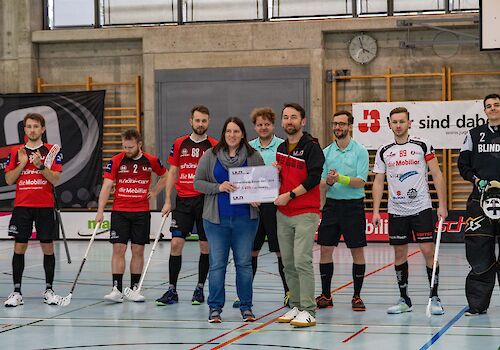 Anlässlich des ersten Finalspiels der Best-of-Five-Serie der 1. Liga Grossfeld überreichte Evelyn Lanz, Kassierin ULA-...